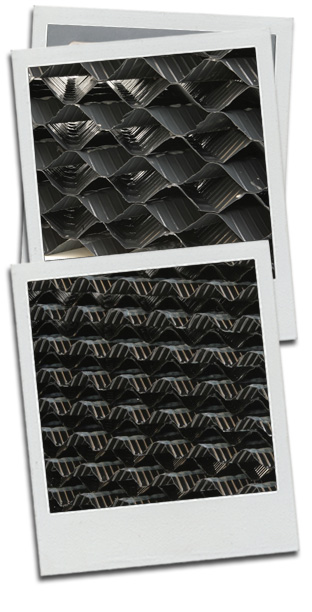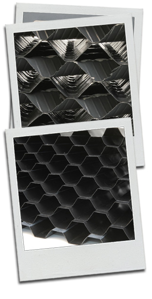 The TB6.5, TB12, TB19 & TB27 blocks are a self-supporting, synthetic medium, fabricated from corrugated, rigid PVC sheets into modules. Cross flow media has been developed for specific treatment objectives. Unlike conventional modular sheet media, no flat sheets are used in the fabrication of the modules. In Cross flow medium, each sheet is corrugated at a 60° angle and assembled in a cross-corrugated pattern with adjacent sheets. This configuration provides continuous and uniform horizontal redistribution of both air and water throughout the full depth of the medium. The result is greatly increased contact time between the wastewater and medium biofilm, as well as increase liquid film diffusion.