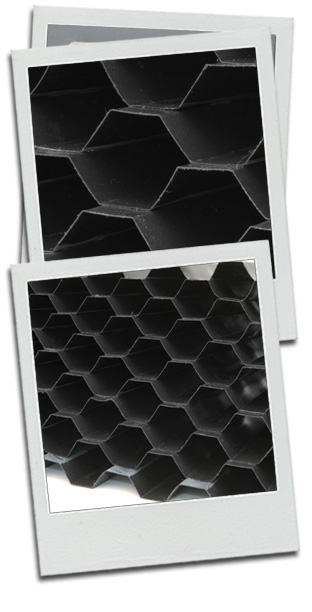 The Lamella block is a honeycomb at a 55° to 60° incline structure. The effluent (industrial plant waste or sewage) is usually mixed with a polymer flocculent and enters the lamella blocks from the bottom.